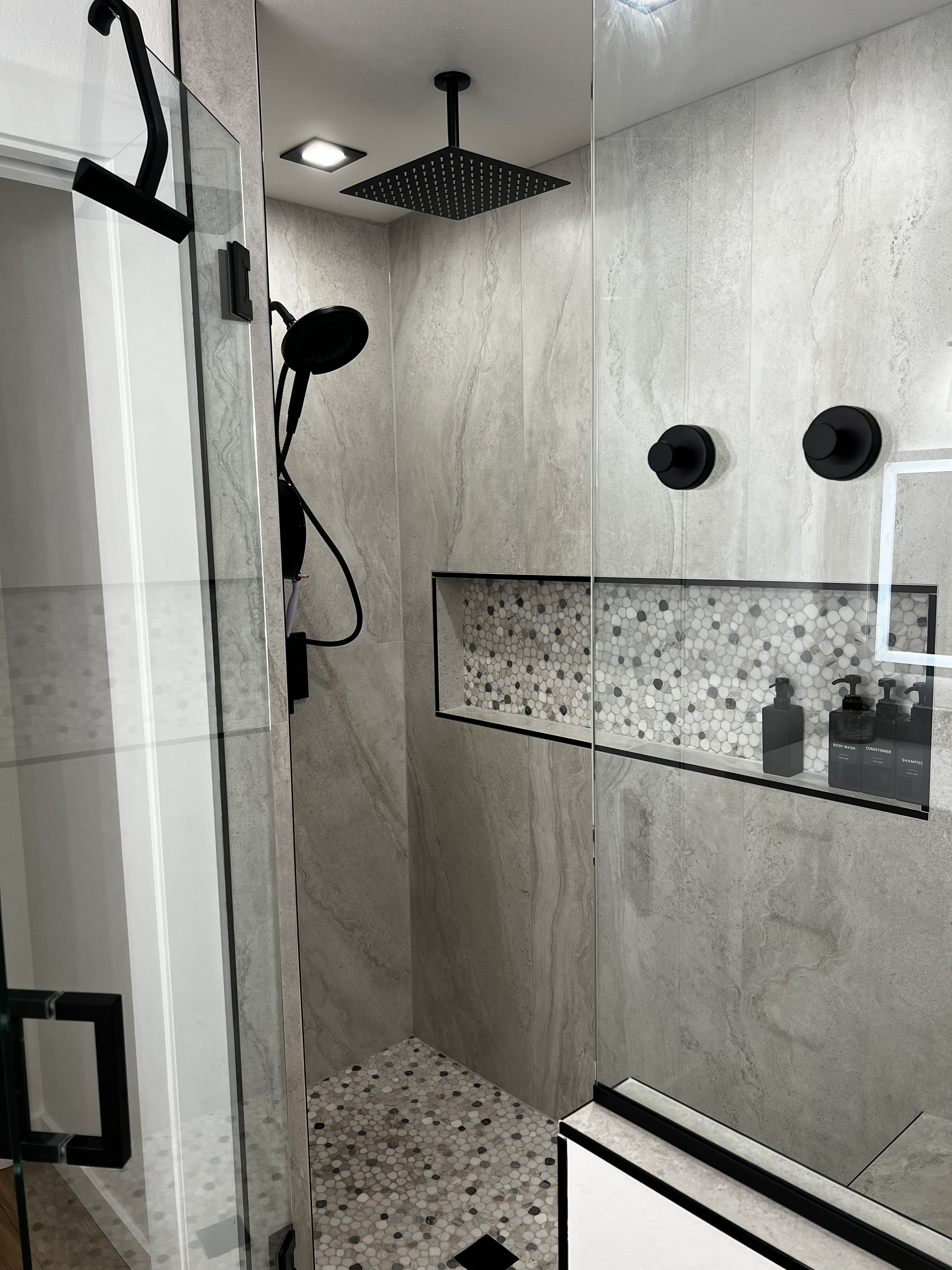 After an unfortunate water leak, this family needed a completely new bathroom remodel. We replaced all the damaged subflooring and framing, provided a great new shower, and converted an unused jetted tub into a large walk-in linen closet. The customer also chose to update their vanity, and the entire bathroom is modern and wonderfully functional.